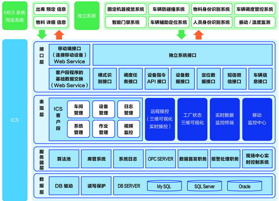 智能起重輸送是包含了庫(kù)區(qū)管理、調(diào)度算法、智能搬運(yùn)等子系統(tǒng),形成了感知、決策、執(zhí)行的智能化整體解決方案。該系統(tǒng)在標(biāo)準(zhǔn)的生產(chǎn)流程、規(guī)范的操作過(guò)程的基礎(chǔ)上,通過(guò)位置傳感器、機(jī)器視覺(jué)等感知設(shè)備狀態(tài)、庫(kù)存狀態(tài)等環(huán)境信息,經(jīng)庫(kù)區(qū)智能管理系統(tǒng)分析后自主分解生產(chǎn)計(jì)劃,通過(guò)智能調(diào)度、路徑規(guī)劃等技術(shù)形成運(yùn)行指令,通過(guò)自主控制、精確定位等技術(shù)由智能設(shè)備自主完成任務(wù)指令并反饋執(zhí)行結(jié)果。該系統(tǒng)還具有遠(yuǎn)程運(yùn)維、云服務(wù)及移動(dòng)推送等功能,實(shí)現(xiàn)全生命周期管理和現(xiàn)場(chǎng)實(shí)時(shí)監(jiān)控。